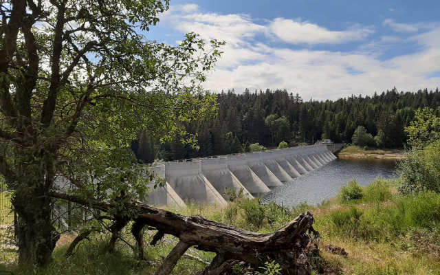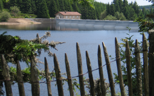 Le barrage est construit entre 1934 et 1940. Il est situé à 1265 mètres d’altitude et alimenté par le ruisseau Noir et le ruisseau de l’Enfer.